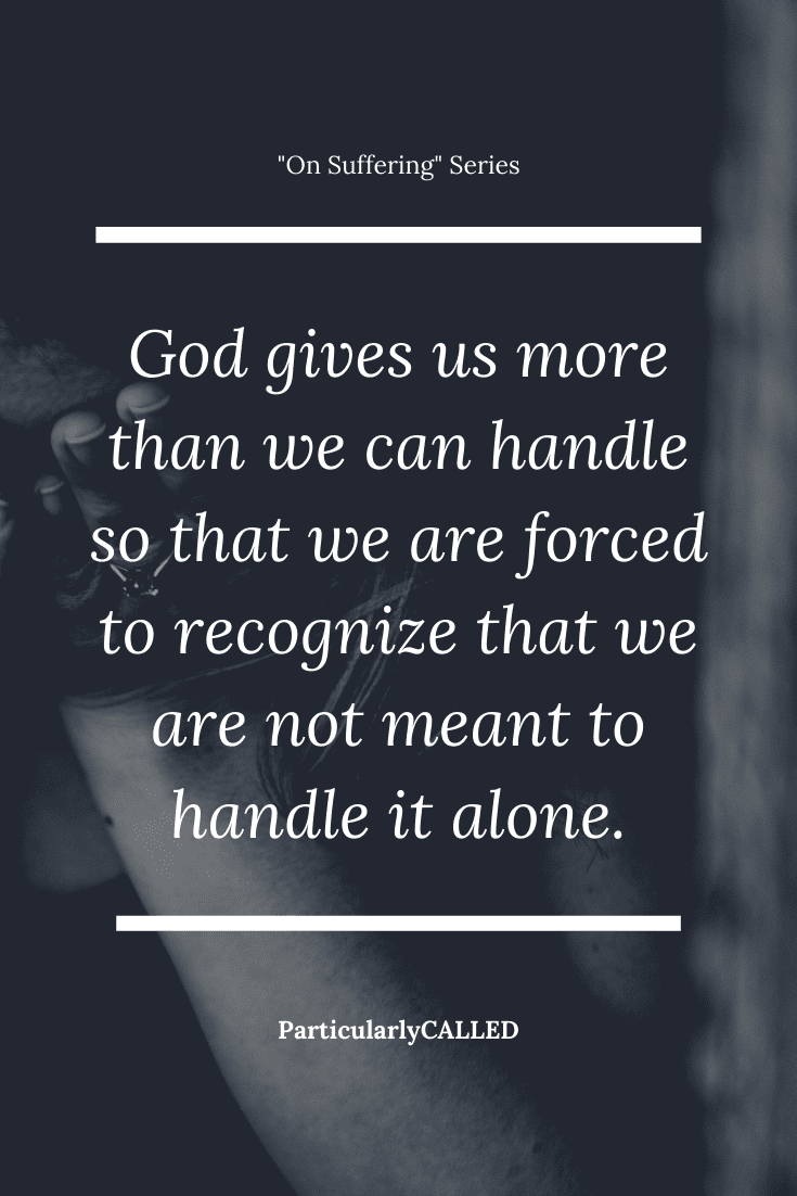 Instead, God gives us always more than we can handle so that we are forced to recognize that we cannot handle it alone.